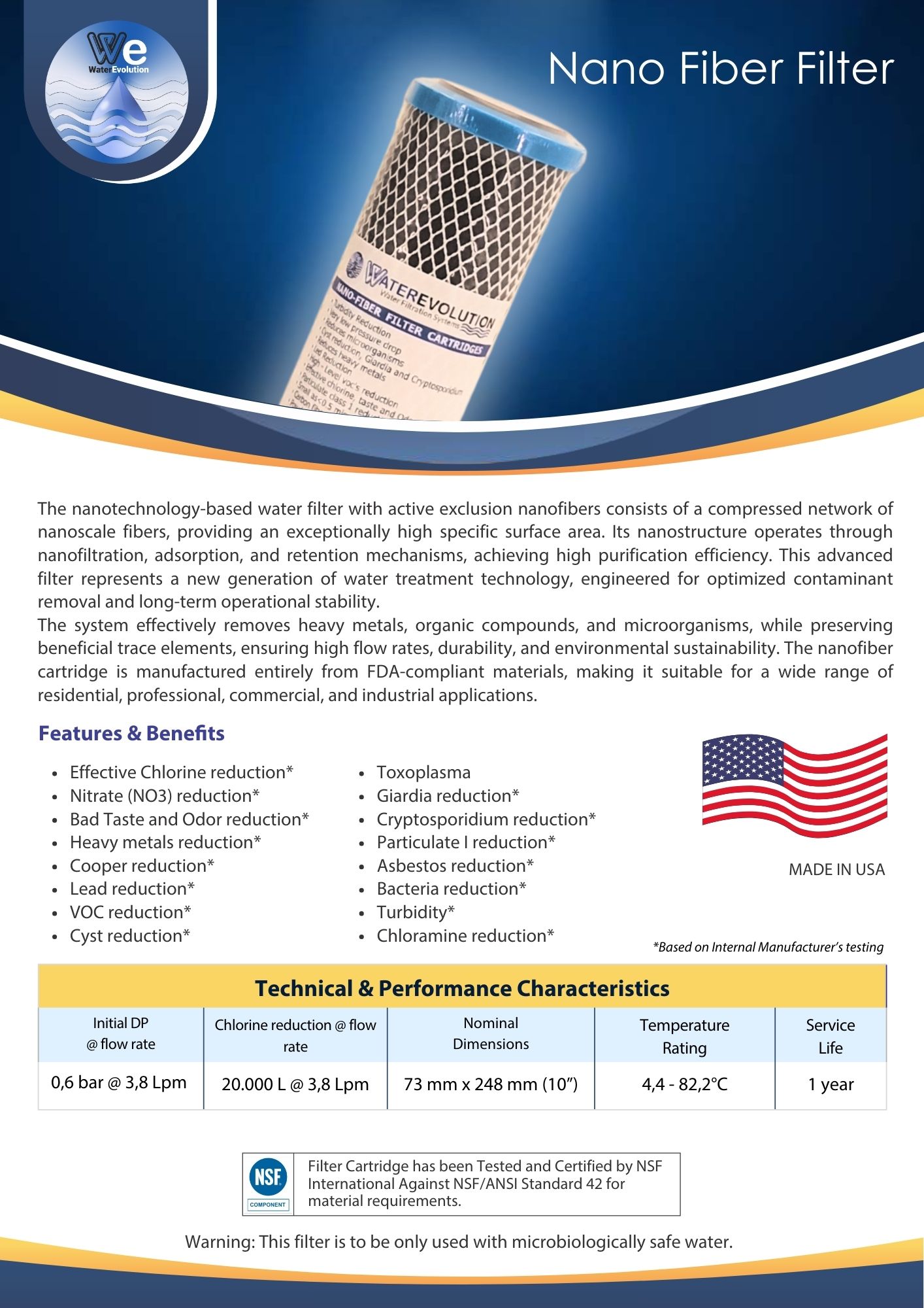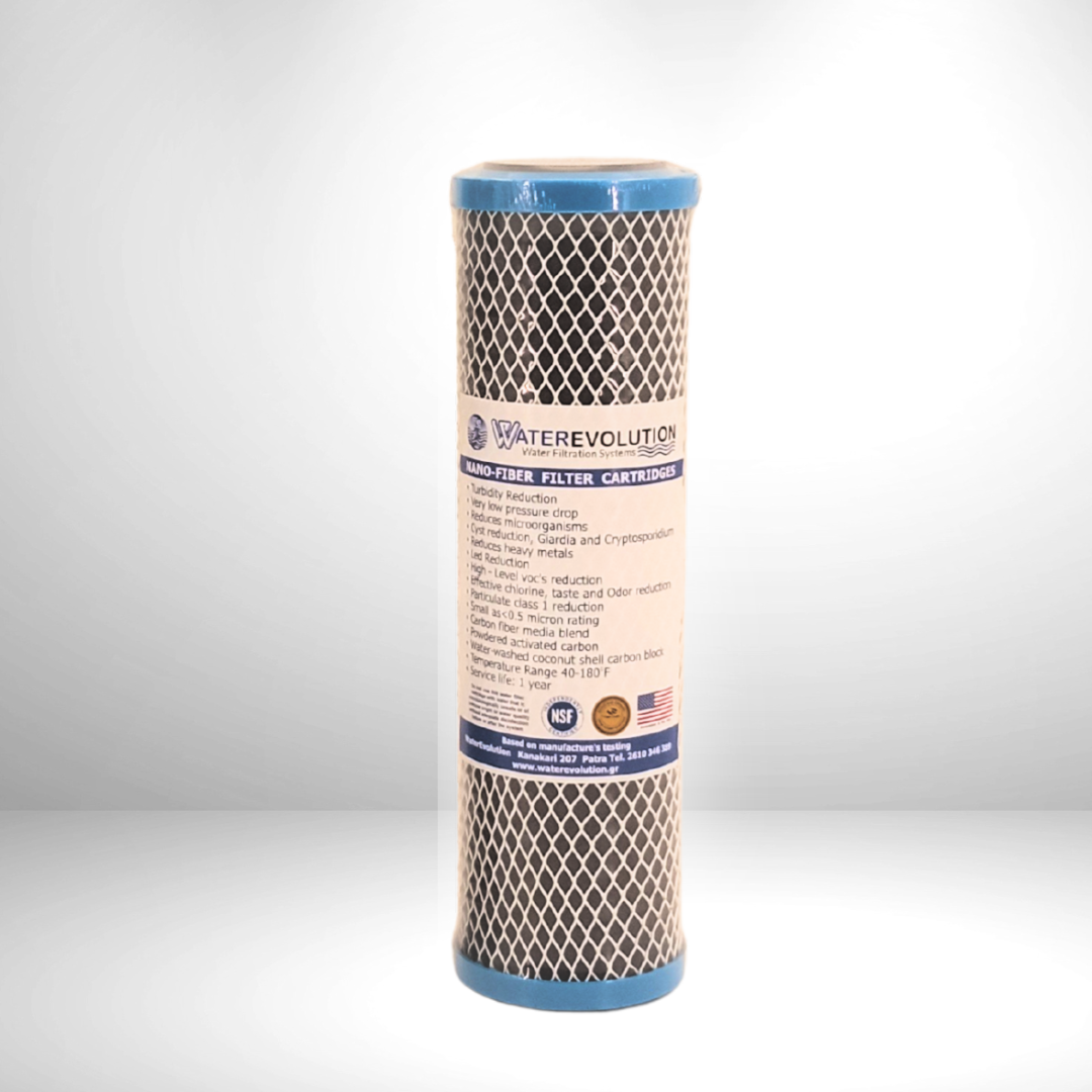 Τα φίλτρα νερού νανοτεχνολογίας WaterEvolution Nanofiltration αποτελούν την αιχμή της καινοτομίας στο τομέα της επεξεργασίας νερού παρέχοντας δυνατότητες φιλτραρίσματος που δεν έχουν διατεθεί ποτέ σε ένα μόνο ανταλλακτικό φίλτρο νερού. Για να επιτευχθεί η ανάλογη απόδοση με τα συμβατικά φίλτρα, απαιτούνται περισσότερα, μεγαλύτερα και ακριβότερα, συνδεδεμένα σε σειρά μεταξύ τους. Για παράδειγμα ένα φίλτρο για την αφαίρεση του χλωρίου συν ένα φίλτρο για την αφαίρεση των βαρέων μετάλλων συν φίλτρο μεμβράνης για τους μικροοργανισμούς, συν ειδικό φίλτρο για τα νιτρικά. Τώρα το εξελιγμένο φίλτρο νανοτεχνολογίας WaterEvolution Nanofiltration αφαιρεί όλους αυτούς τους επικίνδυνους ρύπους από μόνο του.